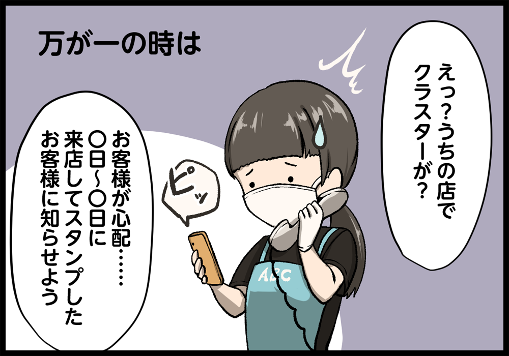 - お店管理メニュー内の感染拡大防止通知フォームから、お店便に連絡してください。